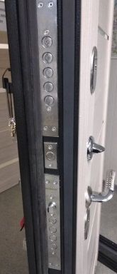 ДОПОЛНИТЕЛЬНЫЙ ЗАМОК: сувальдный KALE, IV (наивысший) класс взломостойкости, дополнительная защита от высверливания: две пластины из высоколегированной стали с обеих сторон замка; диаметр ригелей: 16 мм
