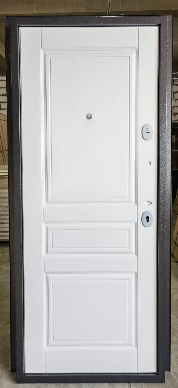 • ВНУТРЕННЕЕ ПОКРЫТИЕ: Царговая панель 22/20/12/ модель М-22, по периметру выборка до толщины 6мм, цвет "АЛЯСКА (белоснежный матовый)• ТОЛЩИНА СТАЛЬНОГО ЛИСТА ПОЛОТНА: 1,5 мм