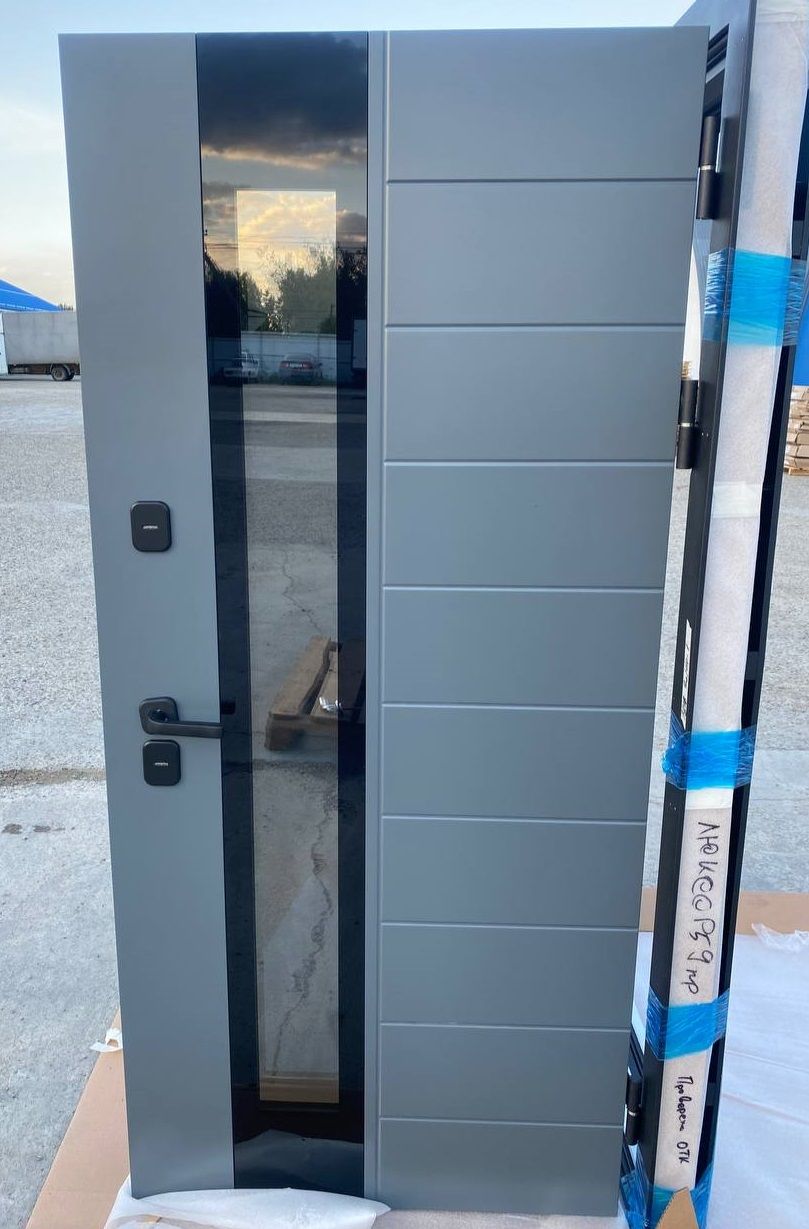 • 3 контура вставного уплотнителя• Внешнее покрытие: фрезерованная МДФ-панель 12 мм, эмаль Ral 7012, наличник эмаль Ral 9005