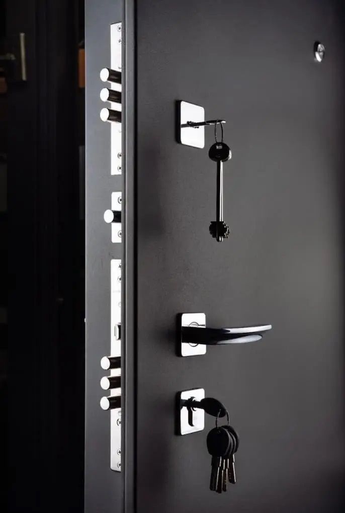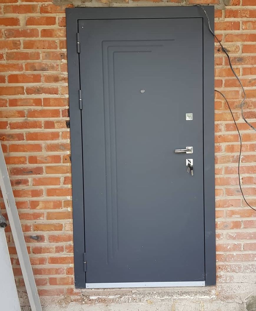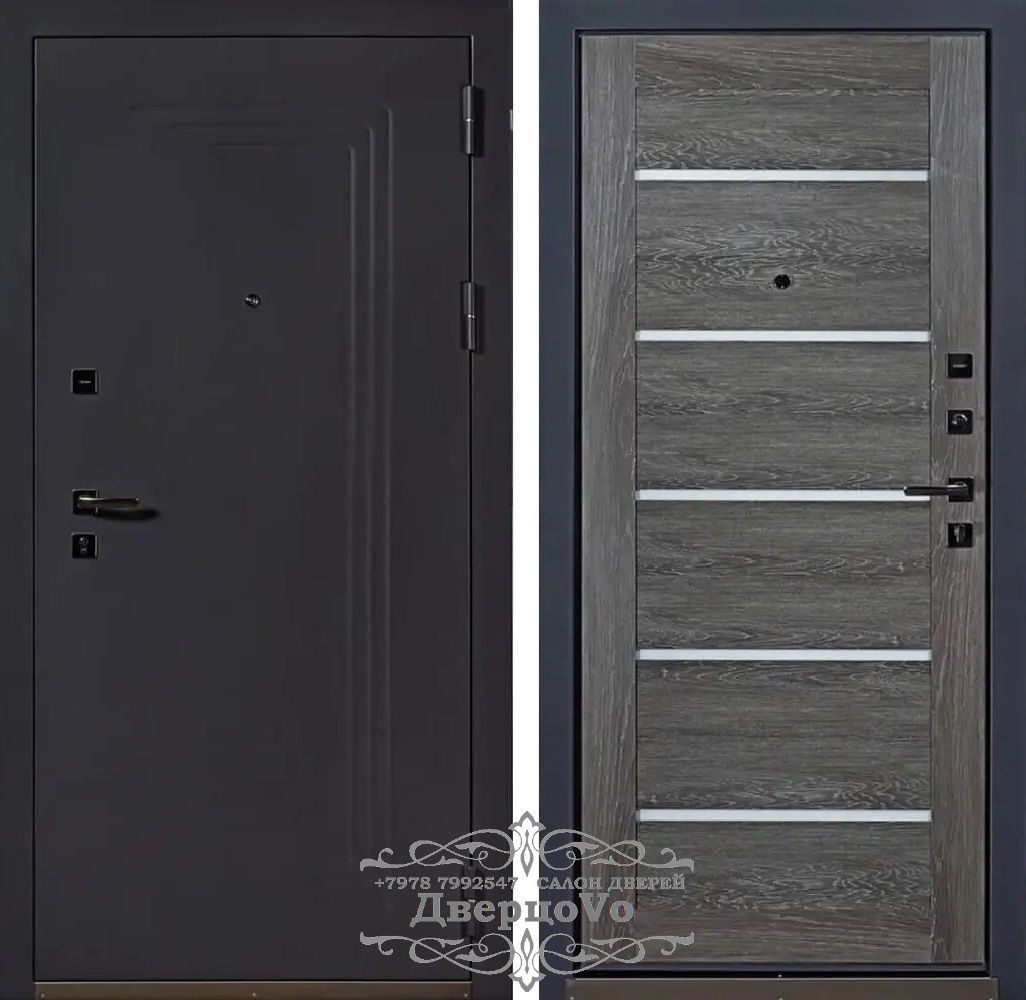 Внешняя отделка: Муар серый (Ral 7024), художественная давка "Техно", стальной лист 2 мм, гнутая безопасная кромка
