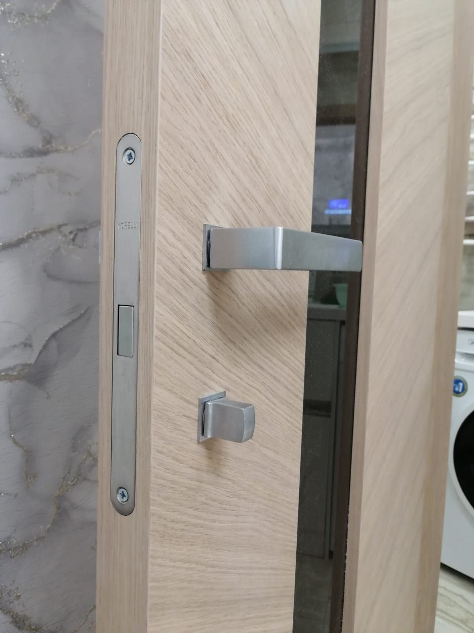 Конструкция двери: Каркас дверного полотна выполнен из бессучкового соснового бруса с применением стабилизирующей подложки.