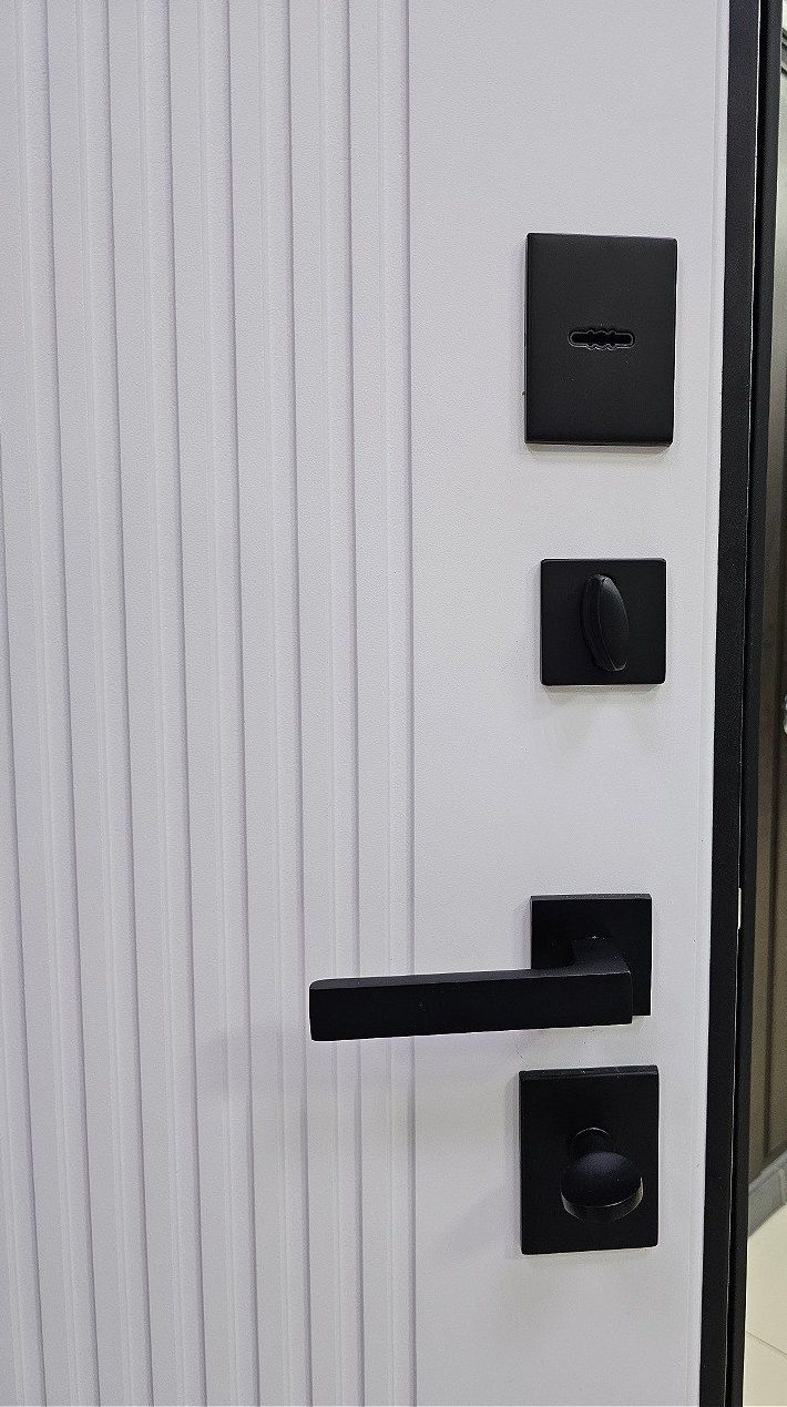 Фурнитура: ручка, глазок, накладки на замки, ночная задвижка, цвет "ЧЕРНЫЙ"